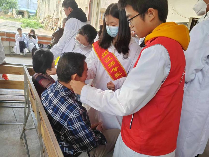 活动中,志愿者团队共分为测血压、测血糖、保健按摩、耳穴压豆、现场维序、宣传摄影6个小分队,开始有条不紊的开始志愿服务。志愿者们根据血压、血糖结果为爷爷奶奶提供饮食、运动的指导,并贴心为听不懂普通话的老人用福清话进行解释、说明。22级康复班的李旭辉、中药学林慧玲等6名同学带着23护理3班同学一起为老人进行保健按摩与耳穴压豆。志愿活动结束后,同学们积极打扫卫生,做好收尾工作。