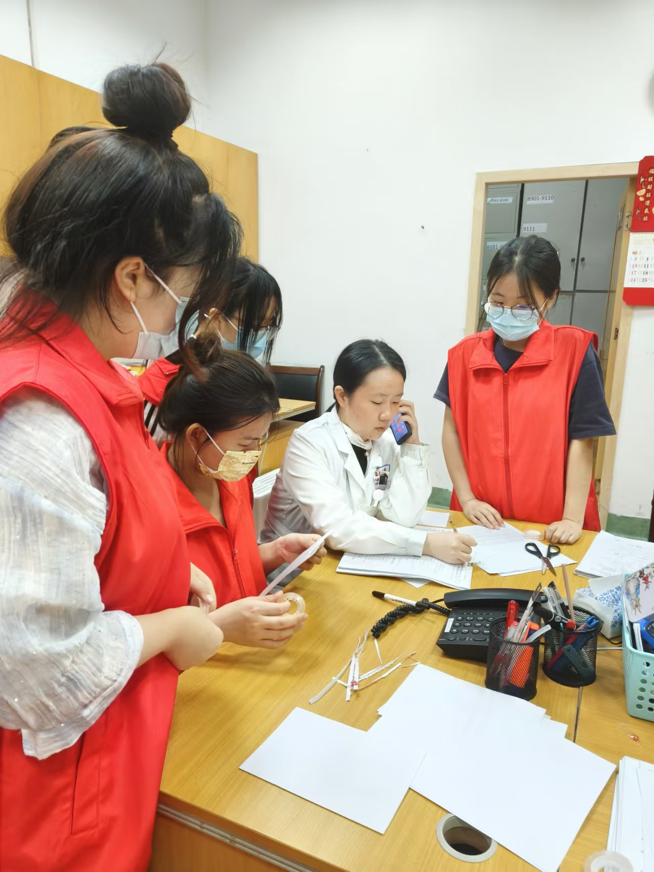此外,志愿者们积极投身于药品整理工作,一丝不苟地核验药品名称与有效期,将药品按类别规范摆放,确保了医疗人员在紧急情况下能够迅速、准确地获取所需药品。同时,通过在小白板上进行明确的标识,使得患者及其家属能够清晰掌握可借用的医疗物资信息,有效提升了医疗服务的及时性和便利性,充分展现了志愿者们的责任感和奉献精神。