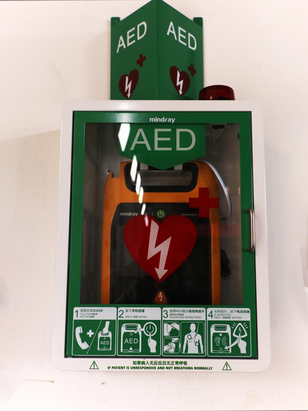 医护学院在福清校区体艺馆、保安室和门诊楼配备了3台AED,应对突发事件,为生命“保驾护航”。