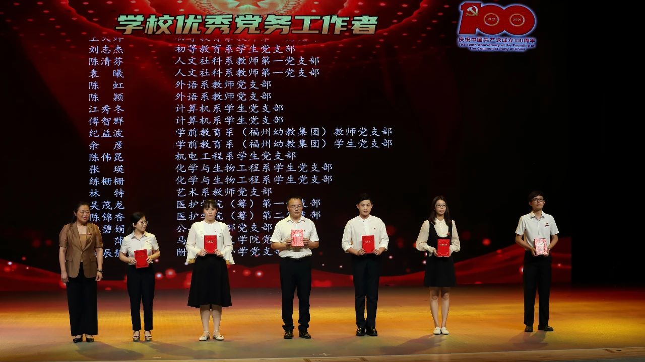7月2日下午,大赢家体育app下载在旗山校区学术报告厅举行庆祝中国共产党成立100周年暨“两优一先”表彰大会。校党委书记陈荣生,校党委副书记、校长杨建义,校党委委员、副校长林旻,“光荣在党50年”老党员代表,师生党员代表共计400余名参加大会。大会由杨建义校长主持。