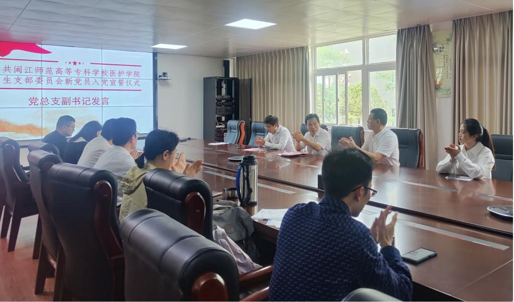 宣誓仪式由支部书记闻迪领誓。新党员们面对党旗,右手握拳,庄严宣誓,表达对党的忠诚和信仰,对共产主义事业的无限热爱和坚定追求。党旗下,新党员们的决心表态回荡在会议室,震撼着在场的每一位党员。支部老党员代表陈胜同志向新党员们表示热烈的祝贺,鼓励新党员们要珍惜党员身份,不忘初心、牢记使命,努力在实践中锻炼成长,为实现中华民族伟大复兴的中国梦贡献青春力量。