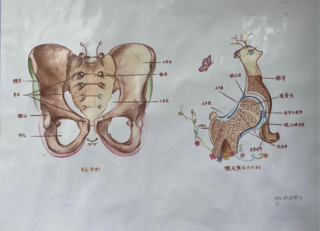 医护学院学生们用创造与想象,将医学融入色彩,让复杂的人体结构、坚硬的骨骼与细致的肌肉纹理,变成了一幅幅美丽动人的图画,诠释了人体结构的魅力。