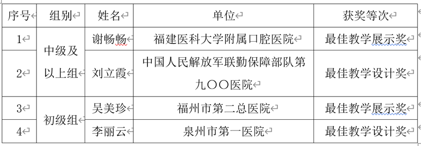 最佳教案设计奖和最佳教学展示奖获奖名单