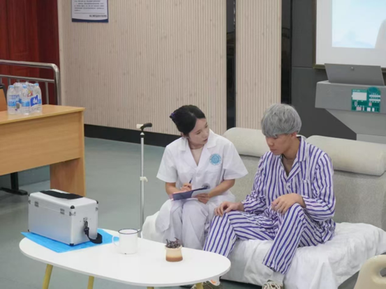 比赛聚焦养老服务一线需求,以现实的案例设置考核场景。选手们化身居家养老照护人员,面对患有帕金森综合征且病情恶化的老人,需在10分钟内完成专业且细致的照护任务。从指导老人使用四脚拐杖进行行走训练,增强其行动能力,到协助老人完成个人卫生清洁、合理规划饮食起居等基础生活照料;从关注老人身体健康,到通过耐心沟通缓解其因疾病产生的焦虑情绪,全方位考察选手的养老照护综合素养。赛场上,选手们沉着冷静、操作规范,充分展现出扎实的专业技能与良好的沟通应变能力。