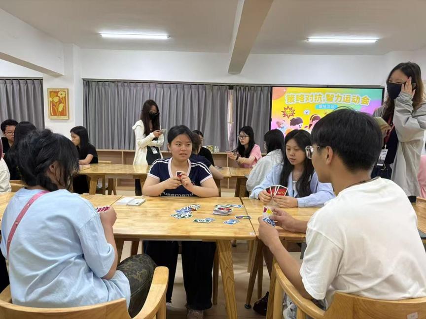 5月17日,“策略对抗,智力运动会”UNO卡牌竞技赛热力开启。24名选手分组竞技,通过灵活运用功能牌制定战术,在“限时极速赛”中展开头脑对决。赛事在轻松紧张之间切换自如,既打破社交隔阂,也提升了学生的逻辑推理与临场应变能力,为校园文化注入更多青春活力与竞技魅力。