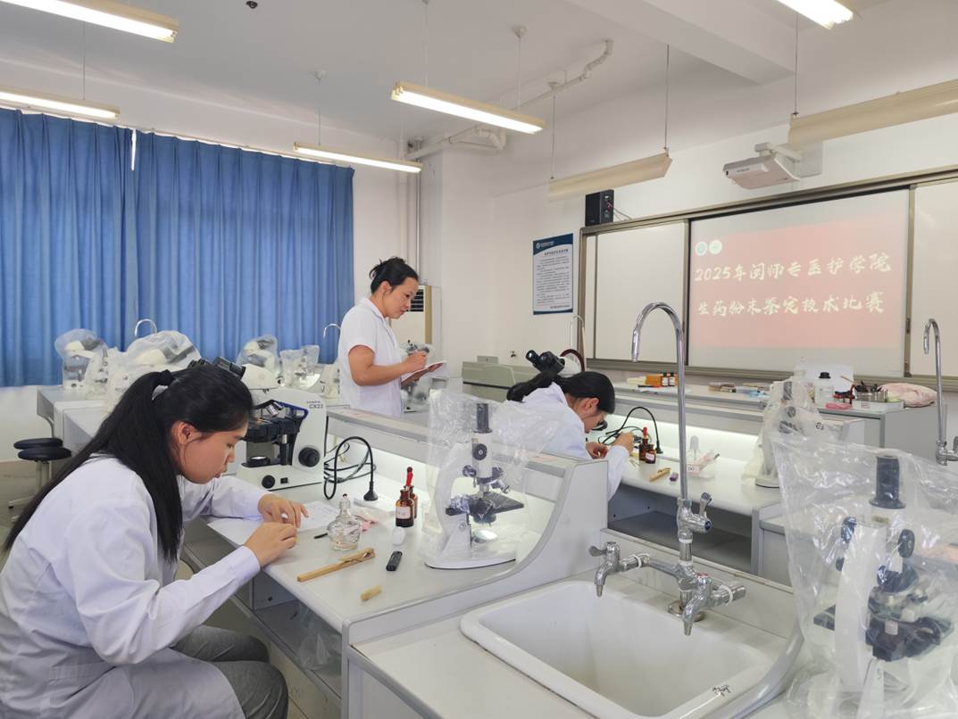 2025年5月16日,医护学院首届“辨微观世界,展生药匠心”生药粉末显微鉴定竞赛在福清校区生药实训中心成功举办。竞赛通过显微鉴定实操考核,助力学生掌握生药鉴别核心技术,弘扬传统生药工匠精神,为培养“明察秋毫、匠心护药”的高素质技术技能人才注入新动能。