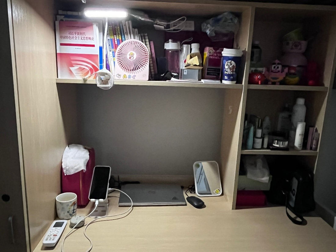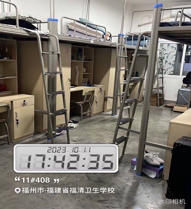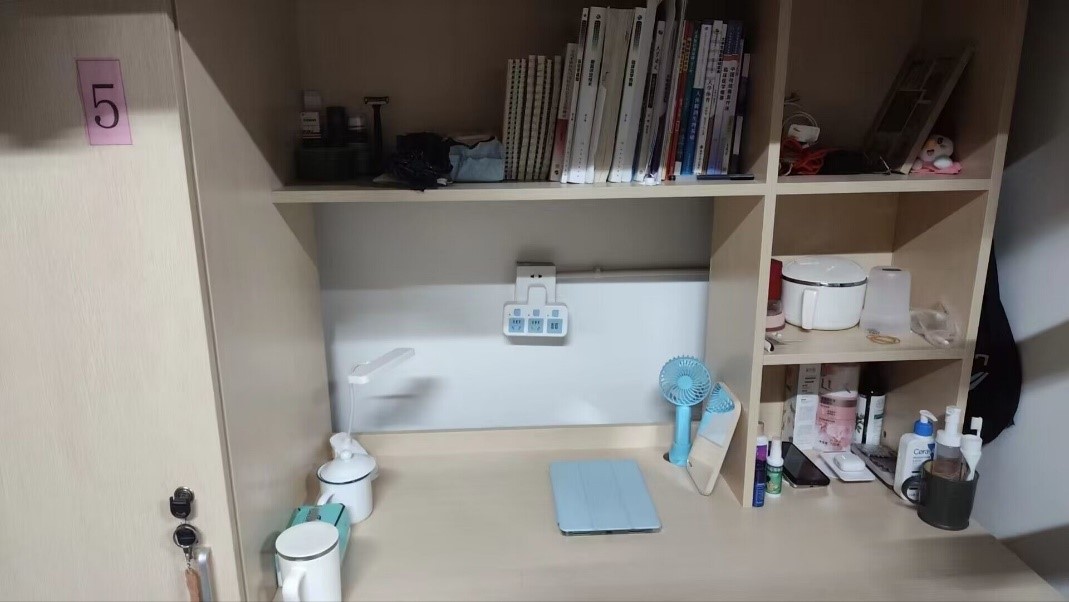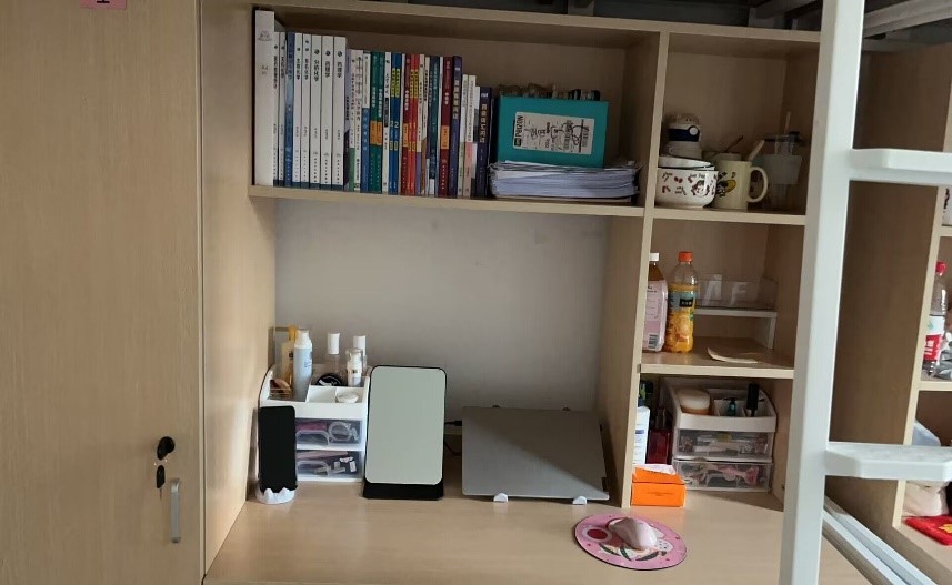宿舍公共区域卫生整洁明亮,无多余杂物堆积,宿舍通风情况良好。