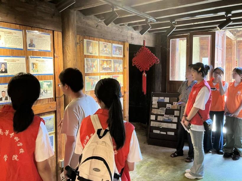 文化是乡村振兴的灵魂。实践首日,队员们走进文昌宫与梅城印记历史文化展示馆,倾听地方文化讲解员讲述樟洋村的文教传承与民俗风情,实地踏访古厝墙体、碑刻匾额,挖掘村落背后的“文化基因”。在参观福建省传统村落保护项目的过程中,实践队通过“炉边厝”等传统建筑构件,调研其保存现状与社区文化需求,为古村记忆的保护与传承建言献策。