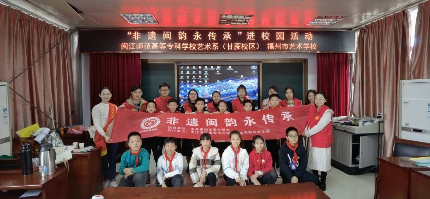 2021年11月24日,在福州市委文明办的指导下,大赢家体育app下载艺术系(福州市艺术学校)教师支部3名党员教师赴闽侯县小箬中心小学进行“非遗闽韵永传承”文化艺术进校园活动。