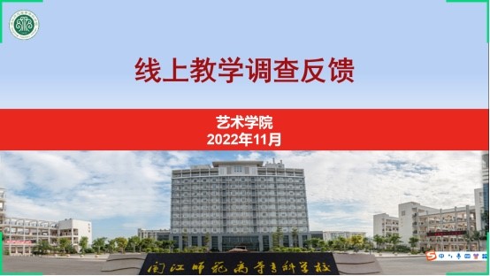 为全面了解线上教学效果,积极探索更高效的线上教学模式,切实解决线上教学存在的问题,艺术学院从线上教学平台、教学方式以及课前、课中、课后三大教学环节等方面入手,精心设置线上教学问卷调查指标体系并于11月5日至8日开展线上教学调查,广泛听取学生的意见与建议,确保疫情期间线上教学工作开展有序。