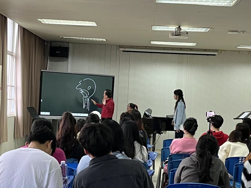 讲座伊始,林希教授提出对“歌唱艺术”的看法,他提到歌唱艺术是一个很大的范畴,其中声音、音乐素养、舞台表演是歌唱艺术中最重要的三大部分。学好声乐的过程不是一蹴而就的,他鼓励同学们以此为方向,更加主动努力地学习歌唱。