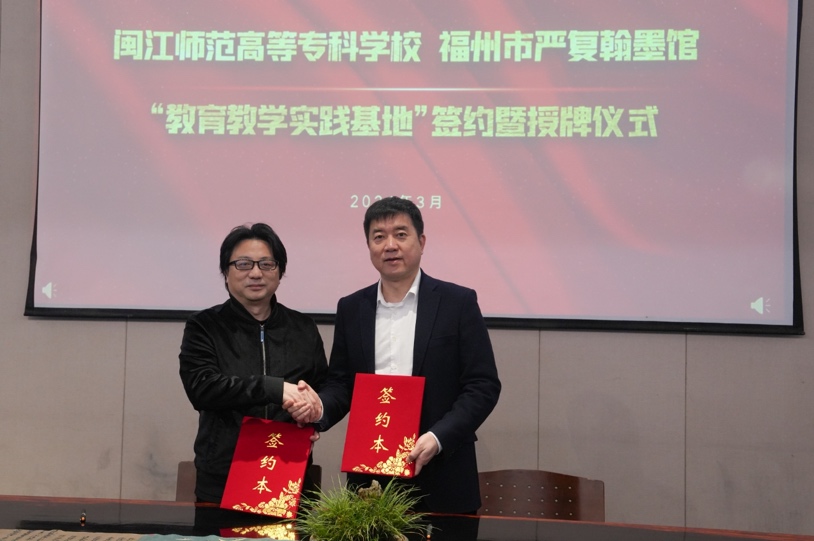 随后,在热烈的掌声中,徐青院长与郑志宇馆长签订共建合作协议,江柳青书记向福州市严复翰墨馆授牌。