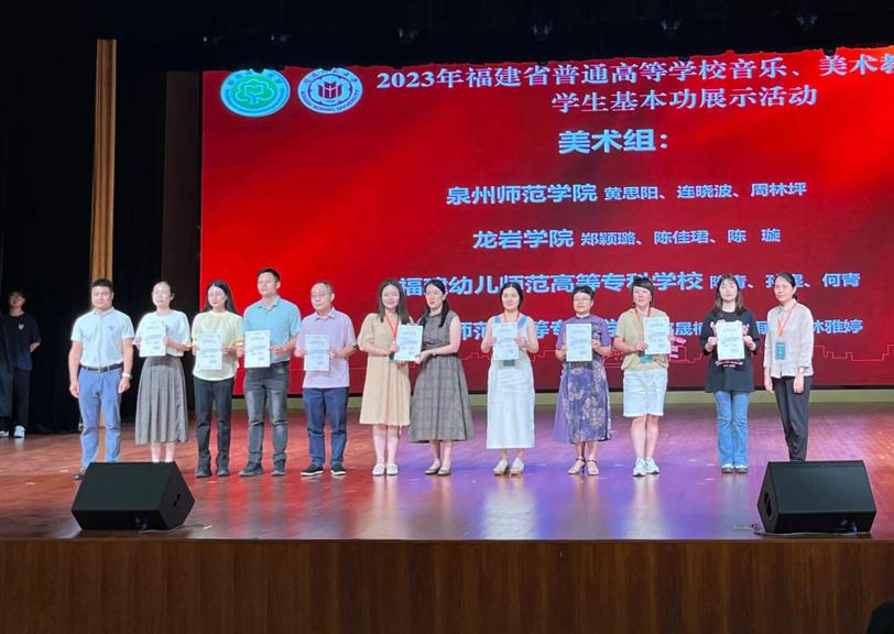在刚刚结束的2023年福建省普通高等学校音乐、美术教育学生基本功展示活动中,艺术学院音乐教育专业学生团队斩获专科组团体一等奖(共1名),3位选手分别获个人全能一等奖(共1名)及三等奖2项(共3名)、“歌唱与钢琴伴奏”单项奖3项(共4名)、“自弹自唱”单项奖2项(共4名)、“合唱指挥”单项奖1项(共1名)以及“微课展示”单项奖1项(共4名),在全省同类院校中占据明显领先地位。美术教育专业学生团队获得专科组团体二等奖(共2名),学生分别获得个人全能二等奖1项(共2名)、三等奖1项(共3名)、“手工”单项奖2项(共5名)、“自选项目”单项奖1项(共5名)。