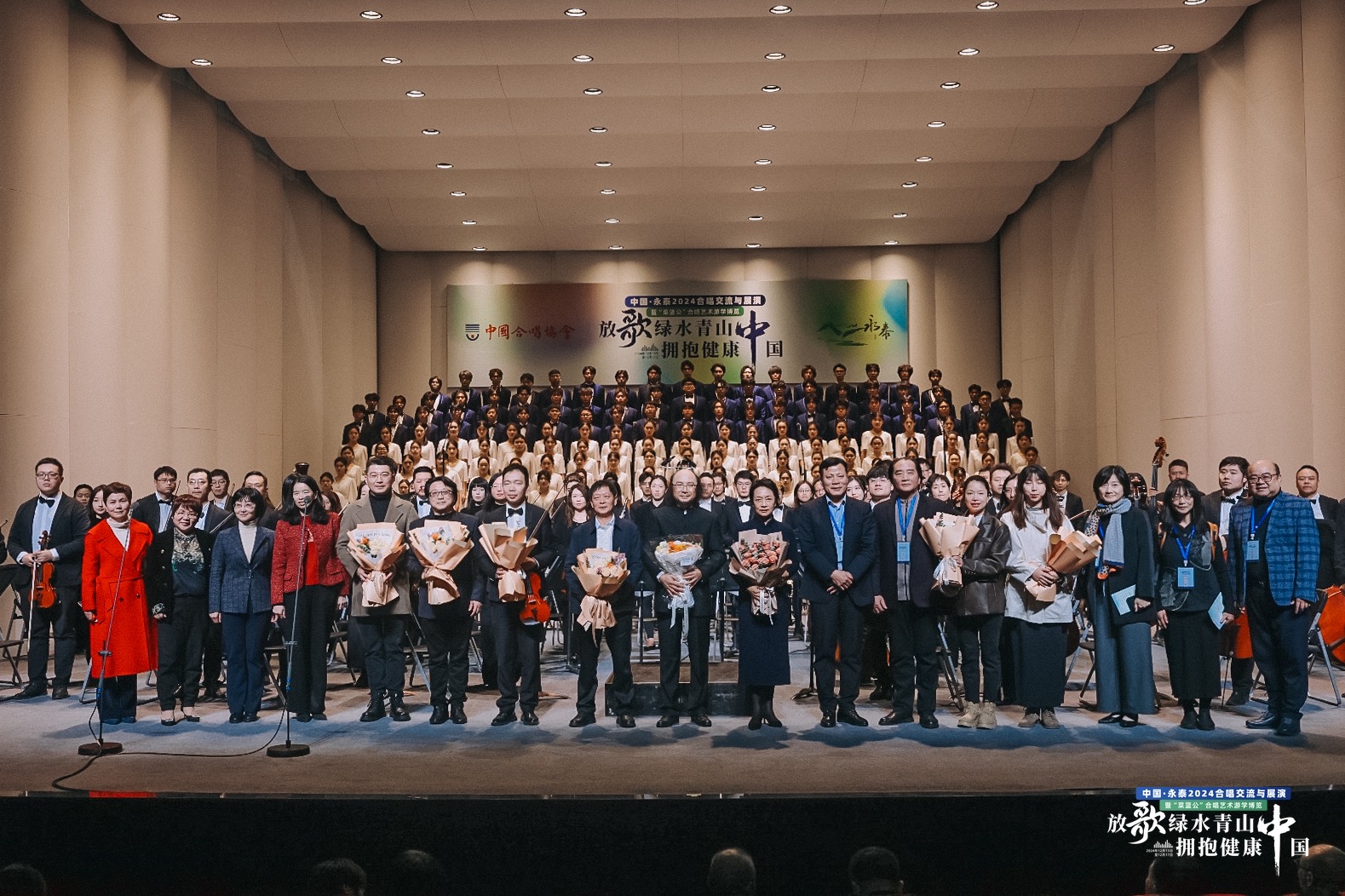 12月13日晚,由中国合唱协会与永泰县人民政府联合主办的“放歌绿水青山 拥抱健康中国”中国·永泰2024合唱交流与展演暨“菜篮公”合唱艺术游学博览在福州市永泰县永泰大剧院开幕。中国合唱协会理事长马俊英、副理事长王燕平,中国合唱协会常务理事、福建省合唱协会会长邵宁,指挥家王军,台湾合唱协会理事连芳贝、监事长房树孝,福州市文旅局党组成员张良柱,福州市委台办副主任徐艳霞,永泰县委常委、县政府党组成员李志专等出席活动。