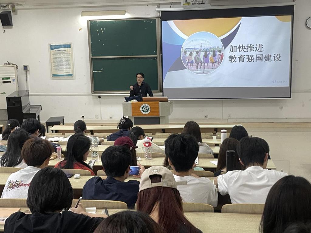 2025年5月28日下午,艺术学院院长徐青在旗山校区1015教室为2024级美术教育专业学生讲授了一堂以“加快推进教育强国建设”为主题的《形势与政策》课。课程紧扣时代脉搏,结合艺术教育特色,深入阐释了教育强国战略的内涵与意义,并勉励学生以专业技能为立身之本,在服务国家发展中实现个人价值。