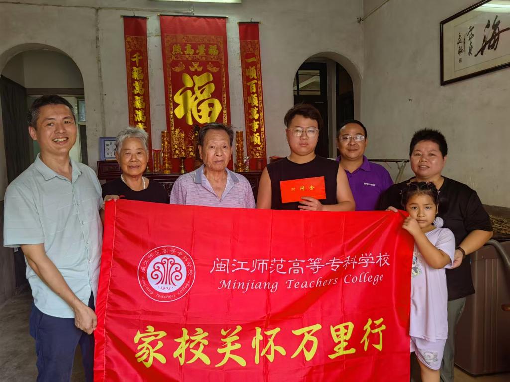 为进一步强化学校与家庭、教师与家长之间的紧密联系,让每一位家长更深入地了解学校工作,同时更全面掌握学生在家的学习与生活状况,切实达成家校携手共同培育孩子的目标,2024年7月3日至5日,艺术学院组织学工团队教师走进学生家庭,开展了此次精准家访活动。此次实地家访工作组由副院长陈洪翔、学院团委书记周宇航以及沈锦城、林惠楠、邓悦、陈婧老师组成。学院学工团队分别前往福州马尾、南平延平、三明清流,对学院3名经济困难学生的家庭进行了实地走访慰问。