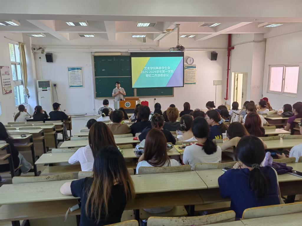 为科学谋划新学期学生工作,进一步凝聚学院两委学生会组织发展合力。2025年9月15日,艺术学院在旗山校区教学楼1014教室召开2025-2026学年第一学期两委学生会期初工作部署会议。会议由艺术学院团委书记周宇航主持,艺术学院副院长陈洪翔、学生会指导老师沈锦城及全体两委学生干部参加会议。