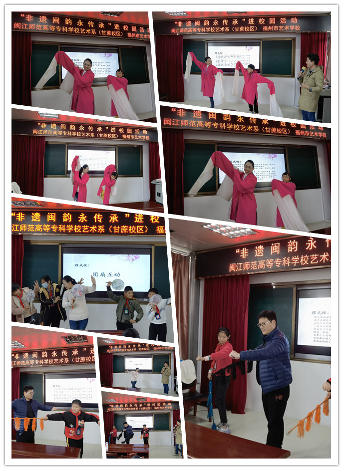 本次的活动历时一个多小时。期间,林隽永与陈菲两位党员教师还和现场的学生进行水袖、团扇和马鞭的互动、“手 眼 身 法 步”的展示以及闽剧童谣《真鸟囝》的教学等。台上老师亲身示范、亲自指导,台下同学积极模仿、踊跃参与,拉近了师生们的距离,让美育之花在校园中随之绽放。