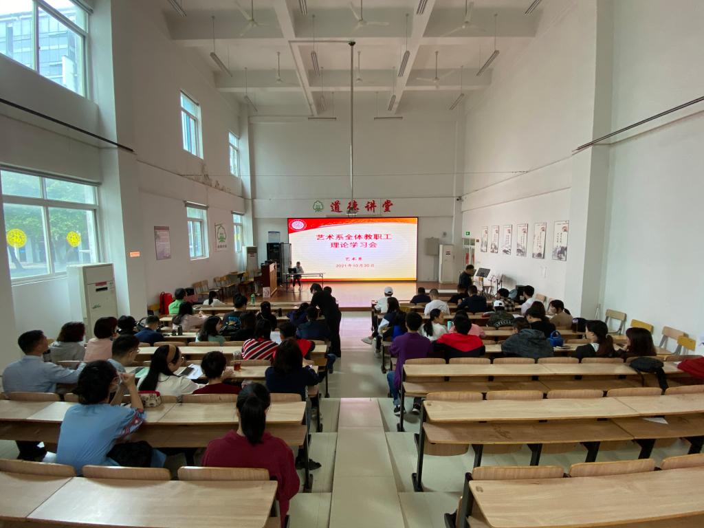 2021年10月20日下午,艺术系(福州市艺术学校)在甘蔗校区教学楼阶梯教室召开了全体教职工理论学习会,会议由党总支宣传委员陈志勇主持,艺术系(福州市艺术学校)全体教职工参加。