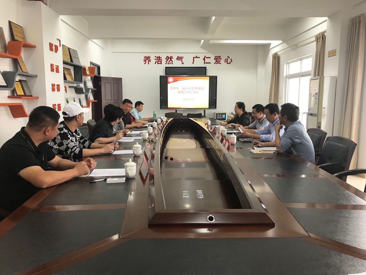 为进一步提升管理水平,更好地推动艺术系(福州市艺术学校)发展,10月19日上午,副校长谢敏峰率基建工作组组长黄鹤良、后勤管理处处长翁晓榕、资产管理工作组组长杨信卫等职能部门负责人到艺术系(福州市艺术学校)调研指导工作。艺术系党总支书记江柳青、艺术系主任、福州市艺术学校校长徐青等系部党政联席会议班子成员陪同并参与座谈。