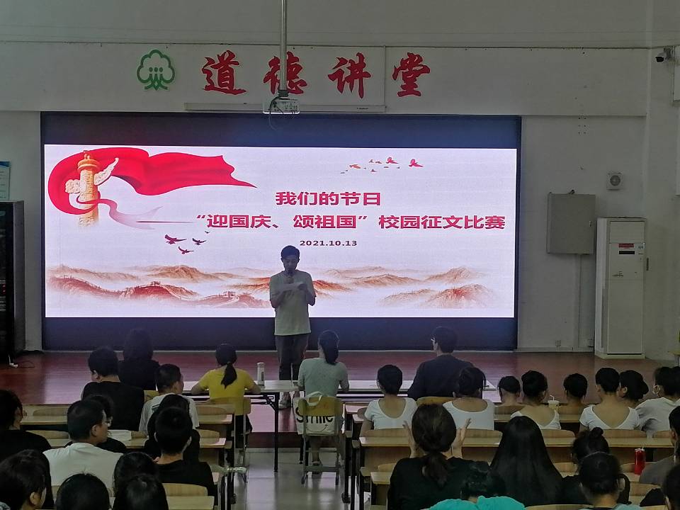 2021年是中国共产党成立的百年华诞,同时也是新中国成立的72周年。为扎实开展学生爱国主义教育,培养学生爱党爱国情操,艺术系(福州市艺术学校)于10月13日中午在甘蔗校区举行“迎国庆、颂祖国”校园征文比赛。本次征文活动得到广大同学的积极响应,收集百余篇征文。经过各班精心筛选后,共14篇征文入选校园征文比赛环节。