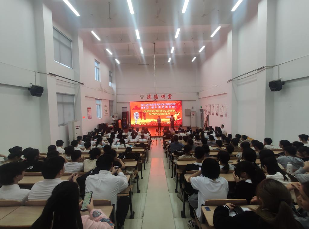 为深入推进党史学习教育,4月28日下午,校图书馆、艺术系(福州市艺术学校)以2021年世界读书日为契机,在甘蔗校区组织开展2021年世界读书日暨庆祝中国共产党成立100周年红色诗词诵读比赛活动。校图书馆馆长董志强、艺术系党总支书记江柳青、艺术系党总支副书记林萍及艺术系(福州市艺术学校)甘蔗校区全体师生、校图书馆相关工作人员参加。