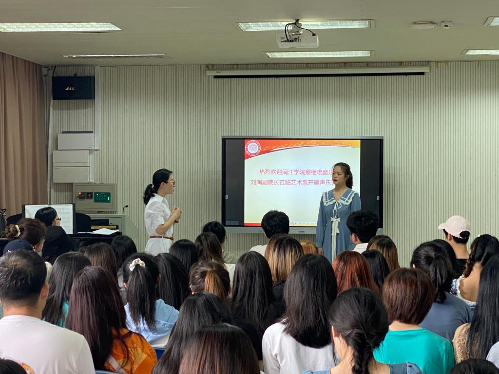 为提高声乐专业学生的音乐素养,进一步提升学生的演唱水准和音乐鉴赏能力,艺术系声乐教研室邀请闽江学院蔡继琨音乐学院刘淘副院长来我系开展声乐艺术讲座。讲座于4月23日下午在旗山校区五楼合唱教室举办,由声乐教研室主任徐丽红副教授主持,声乐教研室全体教师及全体声乐专业主修学生参加。