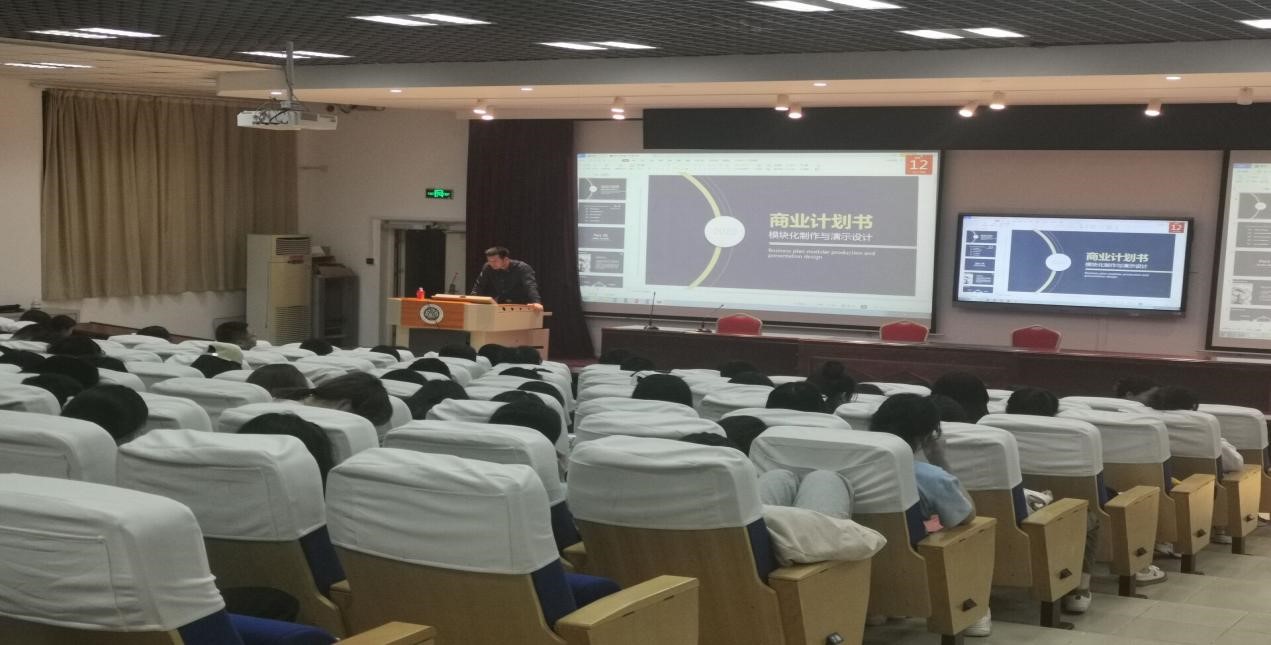 李梁裔经理从实施背景、参赛要求、时间进度、商业计划书撰写、文创产品市场分析等方面介绍了“互联网+”大学生创新创业大赛的基本情况,并选取往年获奖项目进行详细分析和讲解。李梁裔经理鼓励同学们要深入总结梳理大赛成功经验和比赛流程,结合学科特点,充分发挥优势,全力备战比赛。