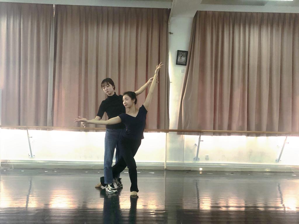 为了不间断训练,寒假期间指导老师利用网络课堂的优势给参赛选手进行线上指导,督促训练。学生入校后,指导老师利用课余及周末时间加强排练。训练中,指导老师对动作的要求一丝不苟、精益求精。她们一排就是几个小时。如果舞蹈教室没有场地,她们就在操场、空地找地方排练。老师高度负责的态度也深深激励着学生。师生共同努力,全力备战比赛。
