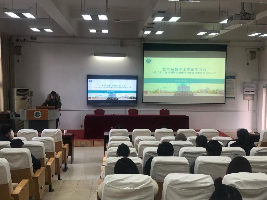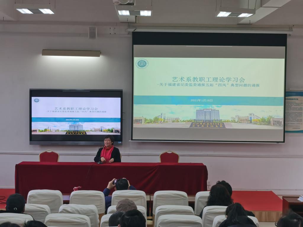 2021年1月18日下午,艺术系(福州市艺术学校)在旗山校区召开理论学习暨廉政教育专题学习会。会议由艺术系林鹏老师主持,艺术系(福州市艺术学校)全体教职员工参加。