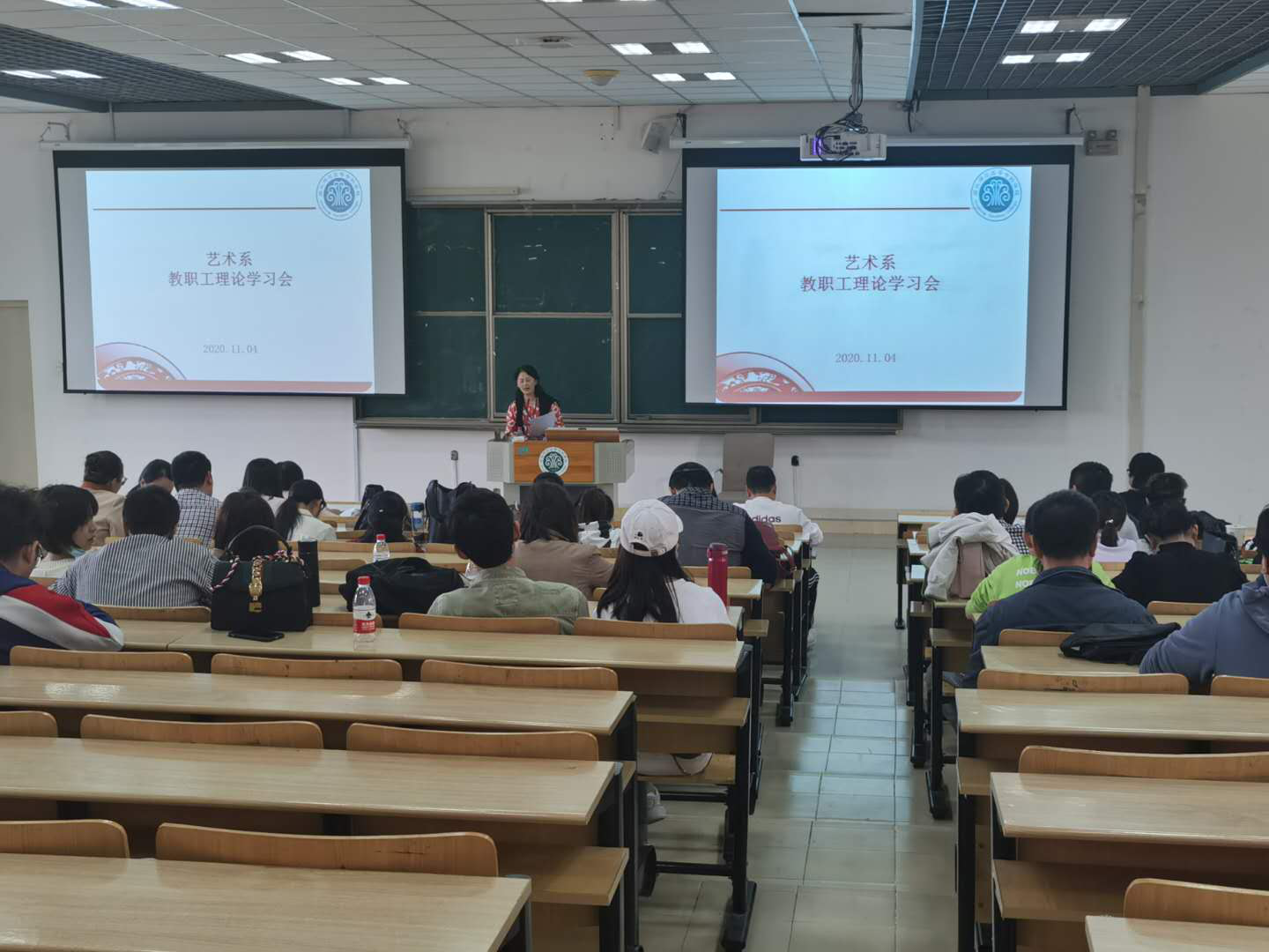 2020年11月4日下午,艺术系在旗山校区召开教职工理论学习会。会议由艺术系林鹏老师主持,艺术系全体教师参加了会议。