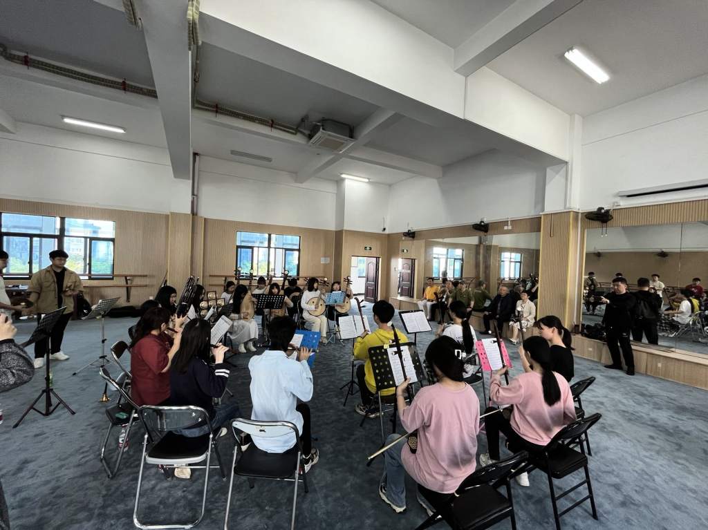 在调研中,钱江南校长一行现场观摩了器乐专业学生演奏的十番音乐曲目《水底天》及闽剧学生表演的闽剧折子戏《痴梦》《施智伯写状》《战金山》等。专业到位的演绎、器乐与闽剧表演学生的默契配合让钱校长一行频频点头称道。