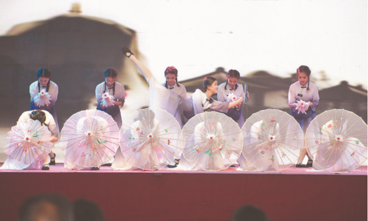 一群端庄美丽的女子手持纸伞在福州古厝中舞出《文儒书韵》的典雅与韵味,一幕幕古城风貌倾诉着千年光阴浸润的文化底蕴;一群带着青春气息的青年,用曼妙的舞姿舞出《青春福州》,表达勇立潮头的新时代大学生听党话、感党恩、跟党走的坚定信念与决心;一块迎风飘舞的绸缎,带你触摸福州海洋文脉,领略《金色大海》的蓬勃生机……现场,三支以“海上福州”历史发展和生动实践为背景编创的舞蹈,一再将演出推向高潮,观众们纷纷拍手叫好。