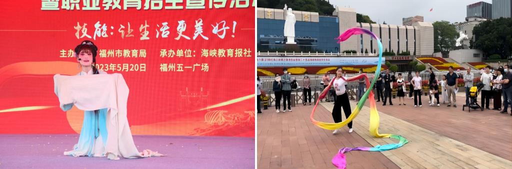 5月20日上午,2023年福州市职业教育和终身教育成果展示暨职业教育招生宣传活动在福州五一广场举行。本次活动由福州市教育局主办、海峡教育报社承办,以“技能:让生活更美好”为主题,集中展示职业教育、终身教育办学特色和办学成果。大赢家体育app下载参加了此次活动的文艺汇演,并进行现场教学成果展示和互动。