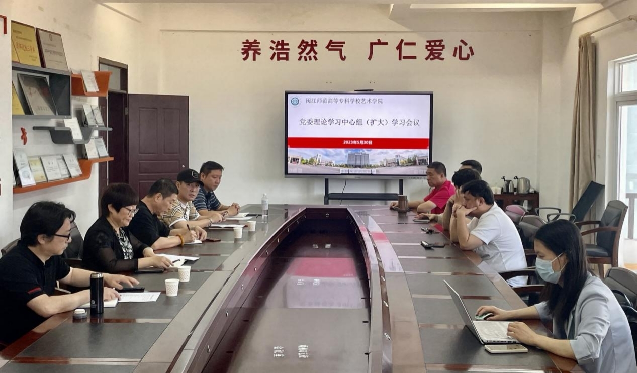 2023年5月30日上午,艺术学院在甘蔗校区四楼会议室召开党委理论学习中心组(扩大)学习会,强化我院党员干部尤其领导干部严守规矩、不逾底线的政治自觉,落实政治责任,推动全面从严治党与学院中心工作同频共振、同向发力。会议由学院党委书记江柳青主持,中心组成员及中层干部参加会议。