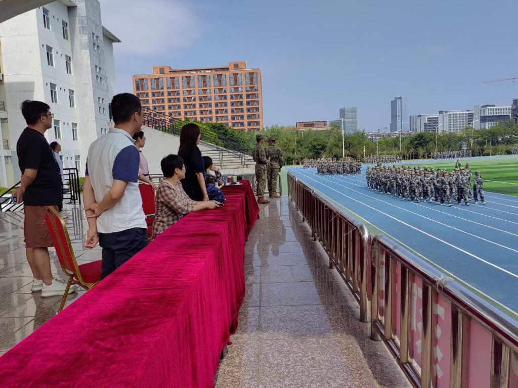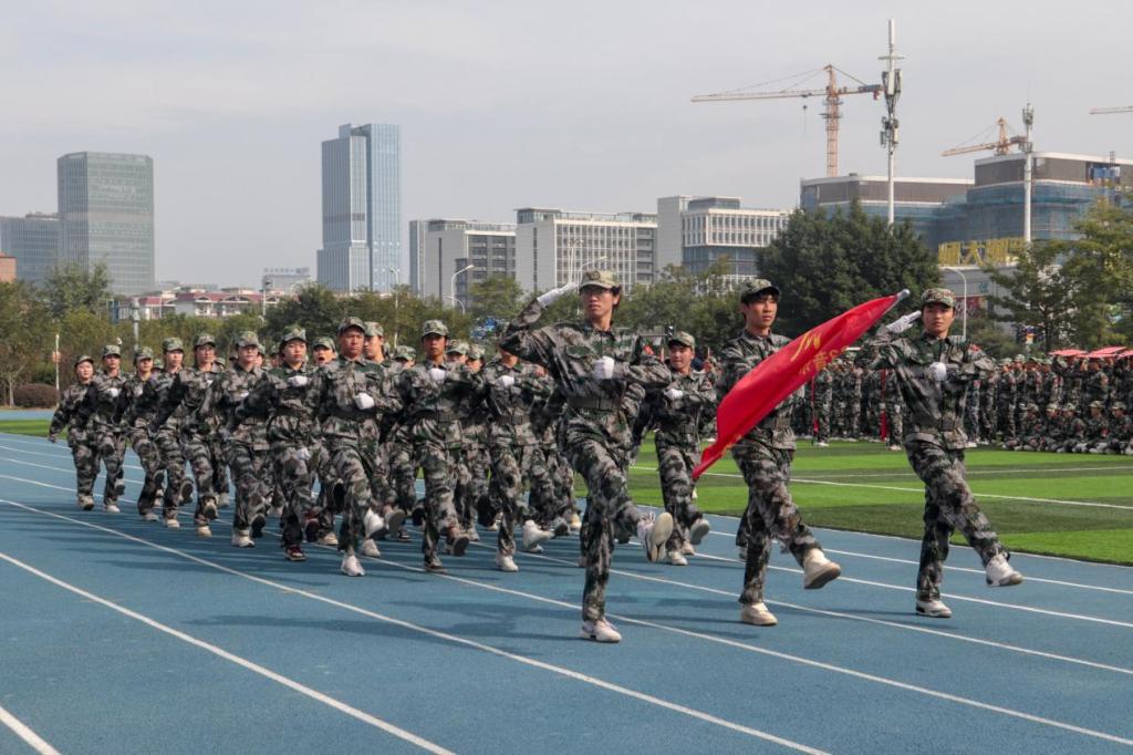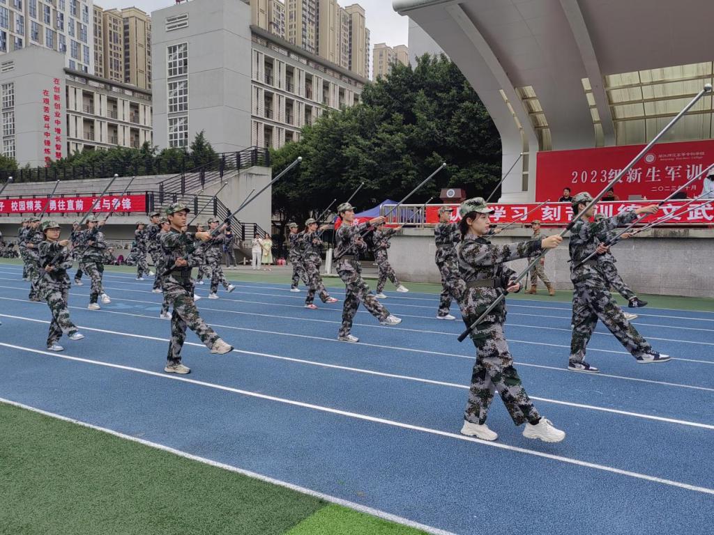 热血铸军魂,青春正勃发。伴着激昂雄壮的国歌,五星红旗冉冉升起,军训分列式展示正式开始。校领导、各学院领导、新生辅导员、军训教官队伍及全体2023级新生参加了本次活动。场上,各班方阵整齐列队,意气风发地踏入操场,以高昂的士气接受检阅。以23舞蹈教育为开场,艺术学院的方阵展军颜、聚军魂,伴随着激昂的军乐声,用整齐的步伐展现集体凝聚力。五年专各专业聚成的刺杀操方阵,以恢弘的士气,在校园写下浓墨重彩的青春景象。