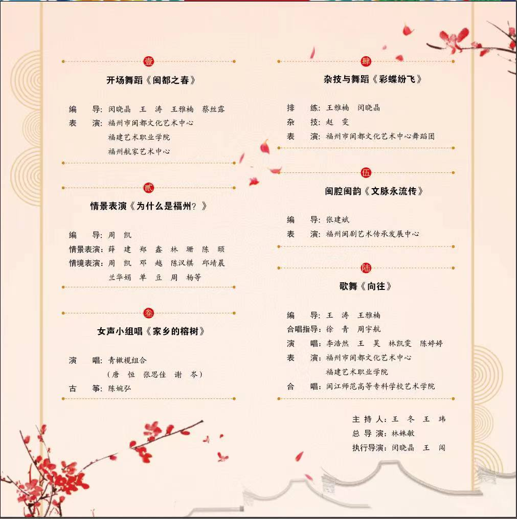 2023年12月29日上午,福州市各界人士新年茶话会在海峡国际会展中心举行。省委常委、市委书记林宝金,市长吴贤德,张忠、刘卓群、兰文等市四套班子和福州新区领导与全市各界人士代表欢聚一堂,辞旧迎新、畅叙友情、共谋发展。我院繁星合唱团在团委书记周宇航和辅导员沈锦城老师的带领下应邀参演节目《向往》。