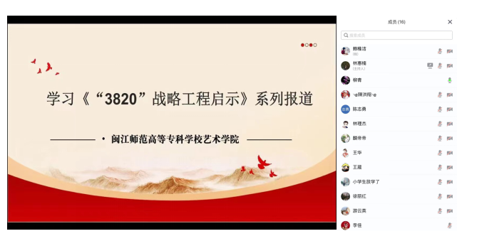 会上,江柳青书记传达了市委理论学习中心组学习(扩大)会议和校党委理论学习中心组学习(扩大)会议精神,并带头谈学习心得。徐青、陈洪翔、林理杰等结合工作实际分别作发言,交流心得体会。大家一致认为,《“3820”战略工程启示》系列报道,对认识、总结和传承福州经济社会发展经验,推动中国特色社会主义伟大事业不断向前发展,具有十分重要的意义。大家表示,要把学习《“3820”战略工程启示》系列报道与学习贯彻党的二十大精神和习近平总书记关于教育的重要论述结合起来,深入领会、准确把握“3820”战略工程所蕴含的真理力量和实践伟力,切实把学习成果转化为推动学院高质量发展的生动实践。