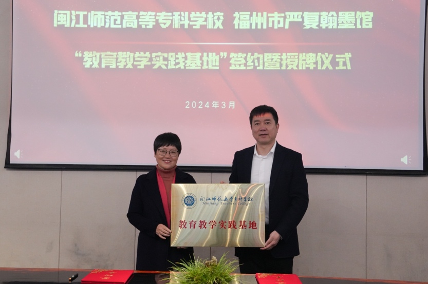 随后,在热烈的掌声中,徐青院长与郑志宇馆长签订共建合作协议,江柳青书记向福州市严复翰墨馆授牌。