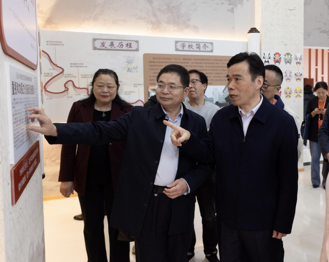 调研组一行实地考察了艺术学院(福州市艺术学校)艺术实训剧场、校史馆及教学楼等重要场所,现场观摩了闽剧课堂教学,观看了《戏韵》《窦娥冤·梦诉》闽剧节目并察看了闽剧数字博物馆运行情况。