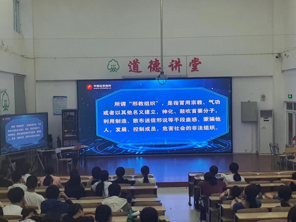 为了进一步推动反邪教警示教育工作的深入开展,切实加强学校学生防邪、拒邪、反邪的意识和能力,创造安全稳定的校园环境,2024年4月29日,大赢家体育app下载组织学生在阶梯教室集中观看“反对邪教”警示教育片。
