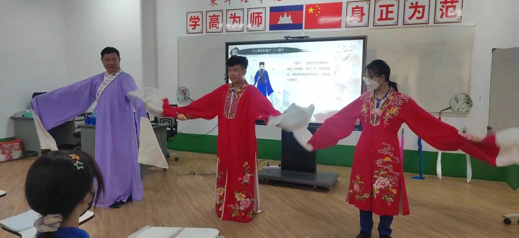 讲座中,林理杰深入浅出地介绍了中国戏曲的起源、发展、行当及服装头饰等相关戏曲知识。他通过戏曲片段展示、角色扮演及互动体验,让学员们亲身感受中国戏曲的魅力和韵味。学员们纷纷表示,这种生动的教学方式让他们在对中国戏曲文化有了更加直观和深入的了解的同时,也对如何将戏曲艺术融入华文教育教学有了更清晰的认知。此次讲座不仅为柬埔寨的华文教师提供了宝贵的学习机会,也为中柬两国之间的文化交流与合作提供了新动能。