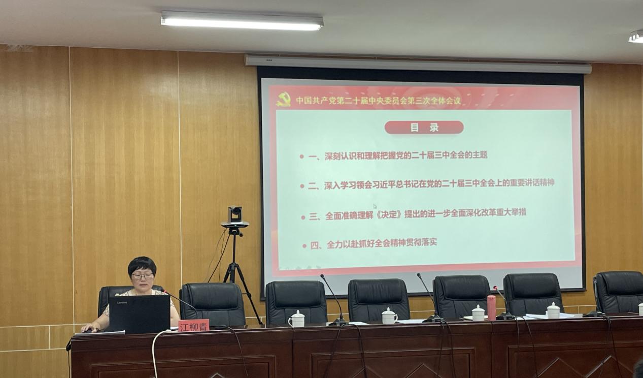 江柳青紧密结合学院实际工作,从深刻认识和理解把握党的二十届三中全会的主题、深入学习领会习近平总书记在党的二十届三中全会上的重要讲话精神、全面准确理解全会《决定》提出的进一步全面深化改革重大举措、全力以赴抓好全会精神贯彻落实等方面,进行了系统宣讲和深入阐述。