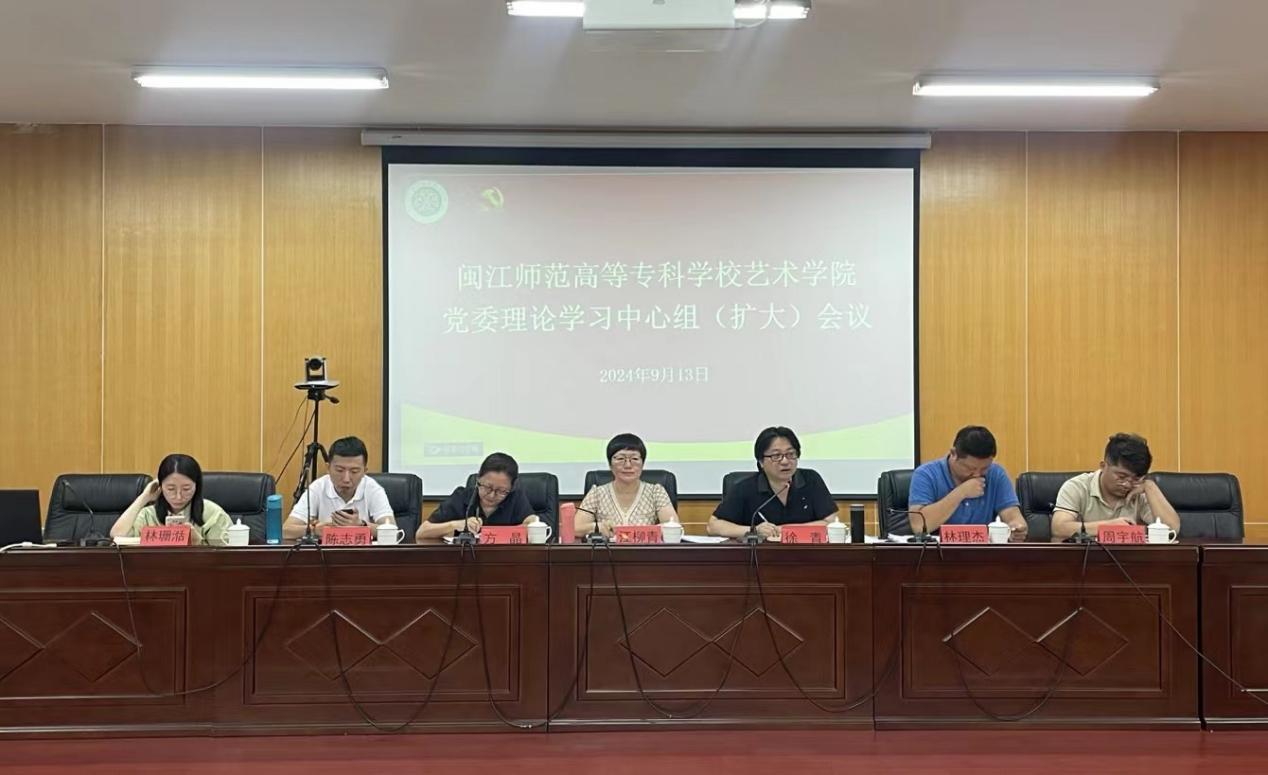 2024年9月13日下午,艺术学院党委在甘蔗校区五楼会议室召开党委理论学习中心组(扩大)学习会议,会议传达学习了习近平总书记近期重要讲话精神及习近平总书记关于党纪学习教育的重要讲话和指示精神,院党委书记江柳青作党的二十届三中全会精神宣讲报告。艺术学院党委委员、党政联席会成员、学院中层干部及全体党员参加,会议由党委书记江柳青主持。